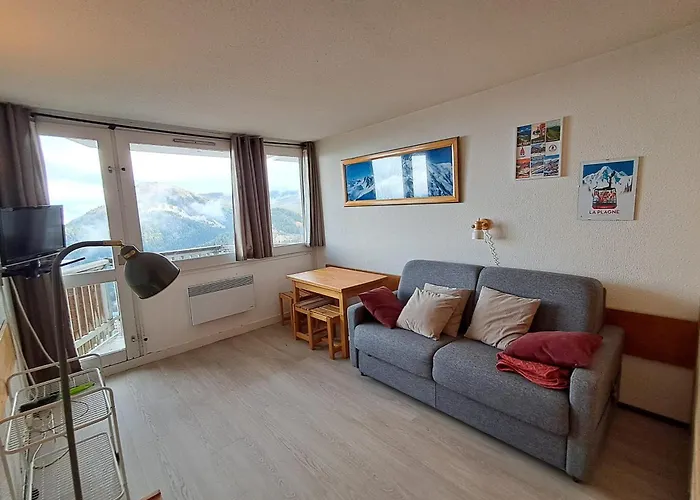 Studio Plagne Aime 2000, 1 Piece, 4 Personnes - Fr-1-181-2616 아파트 아파트에 머무시는 투숙객은 테라스에서 휴식을 취할 수 있으며 도보로 17분 거리에 있는 불바을 방문할 수 있습니다.